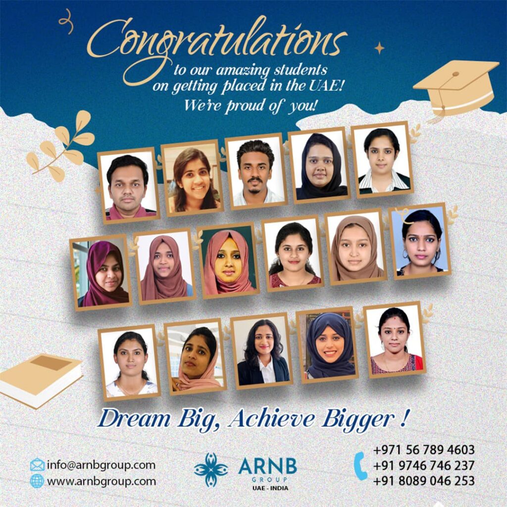 Here’s a photo of students who were recently placed in the UAE 🎓🇦🇪 These bright minds are celebrating their success after securing positions across top companies and institutions: